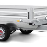 moderne Multifunktionsbeleuchtung, mit Rückfahrscheinwerfer, mit Nebelschlussleuchte, 13-poliger Stecker, EG-Ausstattung, durchgängiger, rutschhemmender und wasserfester Siebdruckholzboden, 15 mm stark, 8 versenkte Verzurrbügel, auf der Ladefläche im Rahmen integriert, montierte Einhängeknöpfe zur Fixierung von Planen und Netzen, robuste Gummifederachse, wartungsfreie Kompaktradlager, Unterlegkeile inkl. Halterung montiert, mit langlebigem und hochwertigem Korrosionsschutz, eloxierte Aluminiumbordwände, mit robusten Winkelhebelverschlüssen, allseitig abklapp- und abnehmbare Bordwände, Bordwandhöhe 35 cm, stabile und langlebige Scharniere, optimale Straßenlage durch teststreckengeprüftes Fahrgestell mit STEMA Sicherheits-V-Deichsel, Zugkugelkupplung mit Sicherheitsanzeige, geschraubtes Fahrgestell, Kunststoff-Kratzschutz auf Zugkugelkupplung