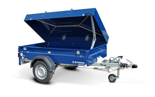 moderne Multifunktionsbeleuchtung, mit Nebelschlussleuchte, 13-poliger Stecker, EG-Ausstattung, spritzwassergeschützt, abschließbarer Deckel, Zusatzausstattung mit Fahrradträger möglich, freigegebene Deckelbelastung: 50kg, durchgängiger, rutschhemmender und wasserfester Siebdruckholzboden, 9 mm stark, 4 Verzurrhaken auf der Ladefläche im Boden, montierte Einhängeknöpfe zur Fixierung von Planen und Netzen, robuste Gummifederachse, wartungsfreie Kompaktradlager, stoßfeste Kunststoffkotflügel, klapp- und abnehmbare Rückwand, STEMA-Sicherheitsverschluss mit schwarzem Soft-Griff, feste Vorderwand, Bordwände und Deckel mit hochwertiger farbiger Pulverbeschichtung, zusätzlicher Kratz- und Wetterschutz, 33 cm hoch, stabile und langlebige Scharniere, optimale Straßenlage durch teststreckengeprüftes Fahrgestell mit STEMA Sicherheits-V-Deichsel, Zugkugelkupplung mit Sicherheitsanzeige, teilweise feuerverzinkt, schraub-geschweißtes Fahrgestell
