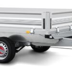 mit langlebigem und hochwertigem Korrosionsschutz, Bordwände aus Stahlblech mit Galvalume (Aluminium-Zink-Beschichtung), doppelwandig, mit robusten Winkelhebelverschlüssen, allseitig abklapp- und abnehmbare Bordwände, Bordwandhöhe 35 cm, stabile und langlebige Scharniere, montierte Einhängeknöpfe zur Fixierung von Planen und Netzen, optimale Straßenlage durch teststreckengeprüftes Fahrgestell mit STEMA Sicherheits-V-Deichsel, Zugkugelkupplung mit Sicherheitsanzeige, geschraubtes Fahrgestell, durchgängiger, rutschhemmender und wasserfester Siebdruckholzboden, 15 mm stark, robuste Gummifederachse, wartungsfreie Kompaktradlager, Unterlegkeile inkl. Halterung montiert, 8 versenkte Verzurrbügel, auf der Ladefläche im Rahmen integriert, moderne Multifunktionsbeleuchtung, mit Rückfahrscheinwerfer, mit Nebelschlussleuchte, mit Umrissleuchten für mehr Sicherheit, 13-poliger Stecker, EG-Ausstattung