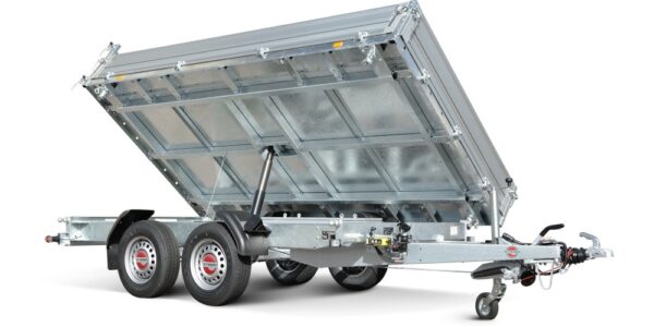 moderne Multifunktionsbeleuchtung, mit Rückfahrscheinwerfer, mit Nebelschlussleuchte, mit Umrissleuchten für mehr Sicherheit, 13-poliger Stecker, EG-Ausstattung, durchgängige Ladefläche aus massivem und verzinktem Stahlblech, 3 mm stark, mit Wartungsstütze, Je 3 Verzurrhaken an den Kragarmen der Querträger unterhalb der Ladefläche, Je 3 Ringmuttern an den Längsseiten unterhalb der Ladefläche, 8 versenkte Schwerlast Verzurrösen mit je 800 daN (geprüft nach DIN 75410-1) auf der Ladefläche im Rahmen integriert, hartverchromter 3-stufiger Hydraulikzylinder mit elektrischer Pumpe, Notpumpe und Begrenzungsventil, zusätzliche Schließsicherung für die Kippbrücken, montierte Einhängeknöpfe zur Fixierung von Planen und Netzen, robuste Gummifederachse, wartungsfreie Kompaktradlager, stoßfeste Kunststoffkotflügel, Unterlegkeile inkl. Halterung montiert, erhöhte Eckrungen für eine größere Durchgangshöhe beim Entladen, mit langlebigem und hochwertigem Korrosionsschutz, Bordwände aus Stahlblech mit Galvalume (Aluminium-Zink-Beschichtung), doppelwandig, mit robusten Winkelhebelverschlüssen, pendelbare Rückwand, allseitig abklapp- und abnehmbare Bordwände, optional mit farbiger Pulverbeschichtung (Aufpreis je nach RAL), Bordwandhöhe 35 cm, mit robusten Breitbandscharnieren, optimale Straßenlage durch teststreckengeprüftes Fahrgestell mit STEMA Sicherheits-V-Deichsel, Zugkugelkupplung mit Sicherheitsanzeige, voll feuerverzinkt, schraub-geschweißtes Fahrgestell, Kunststoff-Kratzschutz auf Zugkugelkupplung, geschweißter und im Tauchbad feuerverzinkter Rahmen aus massivem Stahlblech