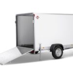 Kofferanhänger STPK O2 13-25-13.1.P15.1 Rampe n. unten P-Box gebremst, Plywood mit 1 x große Rampe nach unten und 2 x Abstellstütze