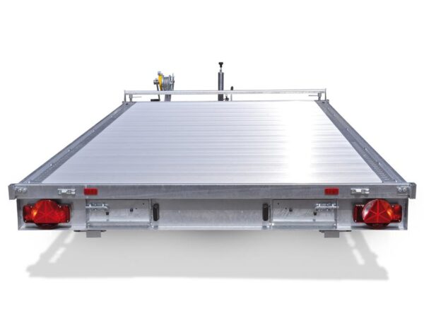 V-Zugdeichsel tauchbad feuerverzinkt, 13-poliger Stecker und Rückfahrscheinwerfer, Bodenplatte 18 mm stark, 2 tauchbad feuerverzinkte Auffahrbohlen aus Gitterrost unter der Ladefläche eingeschoben, 2 Stützfüße serienmäßig bei den 3500 kg Modellen, 7 Verzurrringe pro Seite im Außenrahmenprofil, Lochprägung im Außenrahmenprofil, Seilwinde mit Seil und 3-fach tiefenverstellbarer Halterung, Automatik-Stützrad